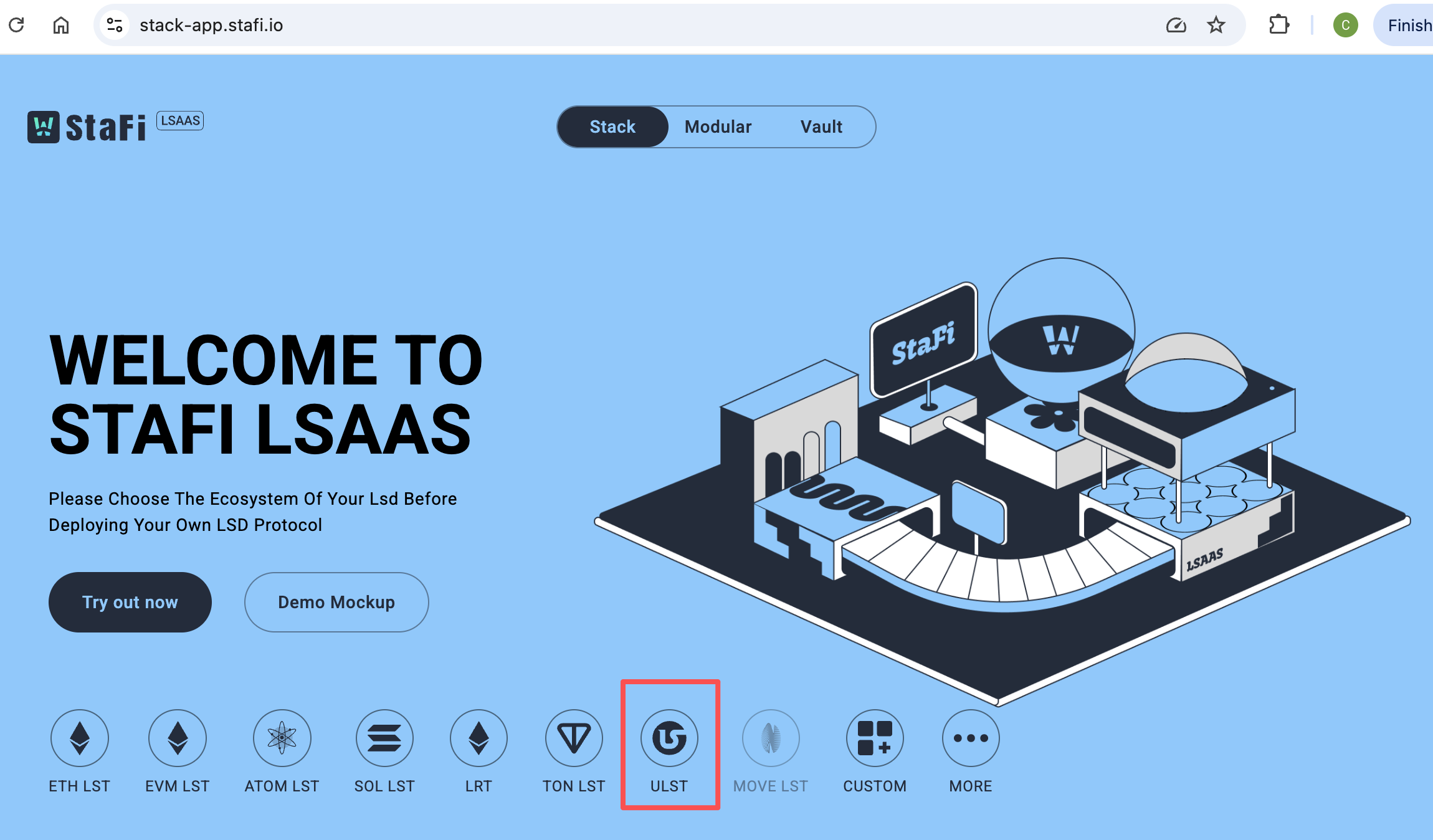 61 Lab have made StaFi LSaaS for project parties to deploy their LSD network contracts. Click ULST icon to deploy your ULST network.